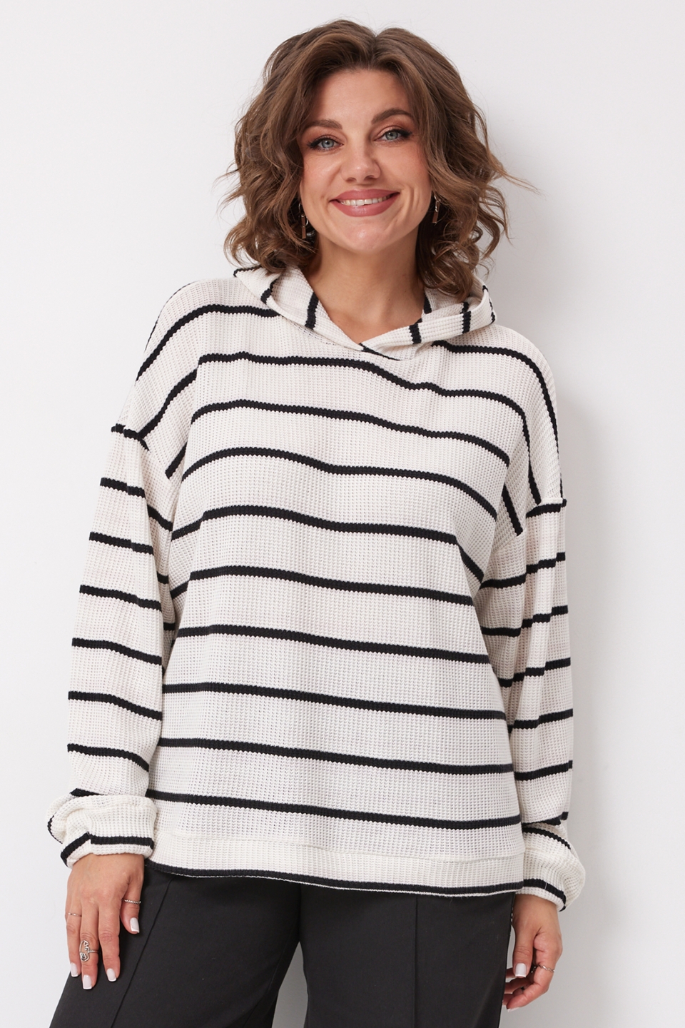 выполненную из мягкого вискозного трикотажа в полоску, которая с лёгкостью