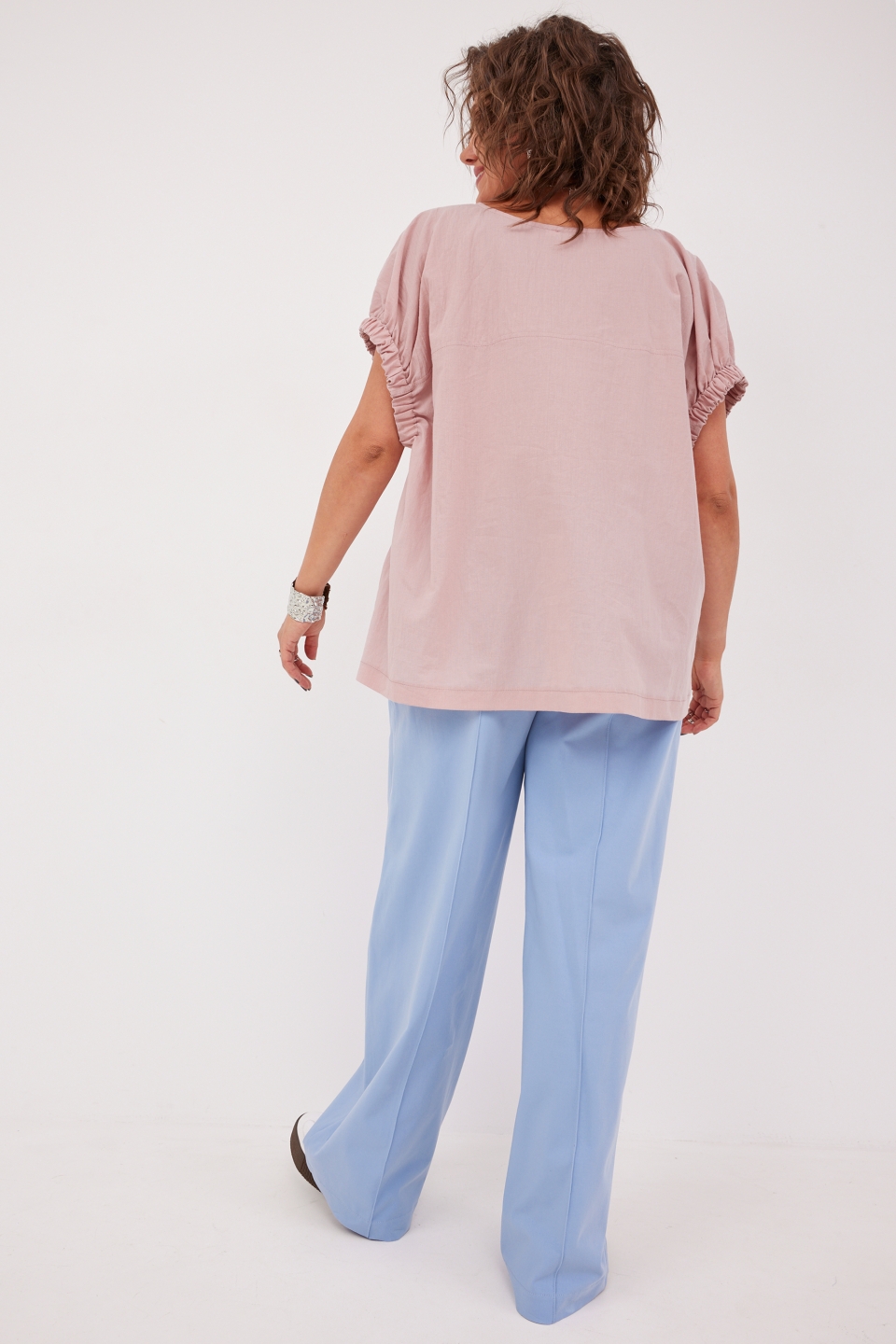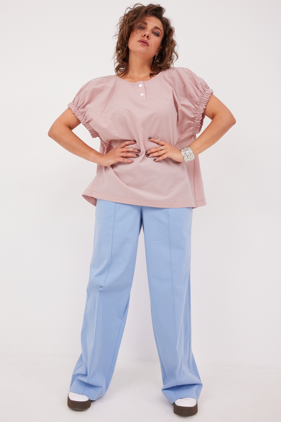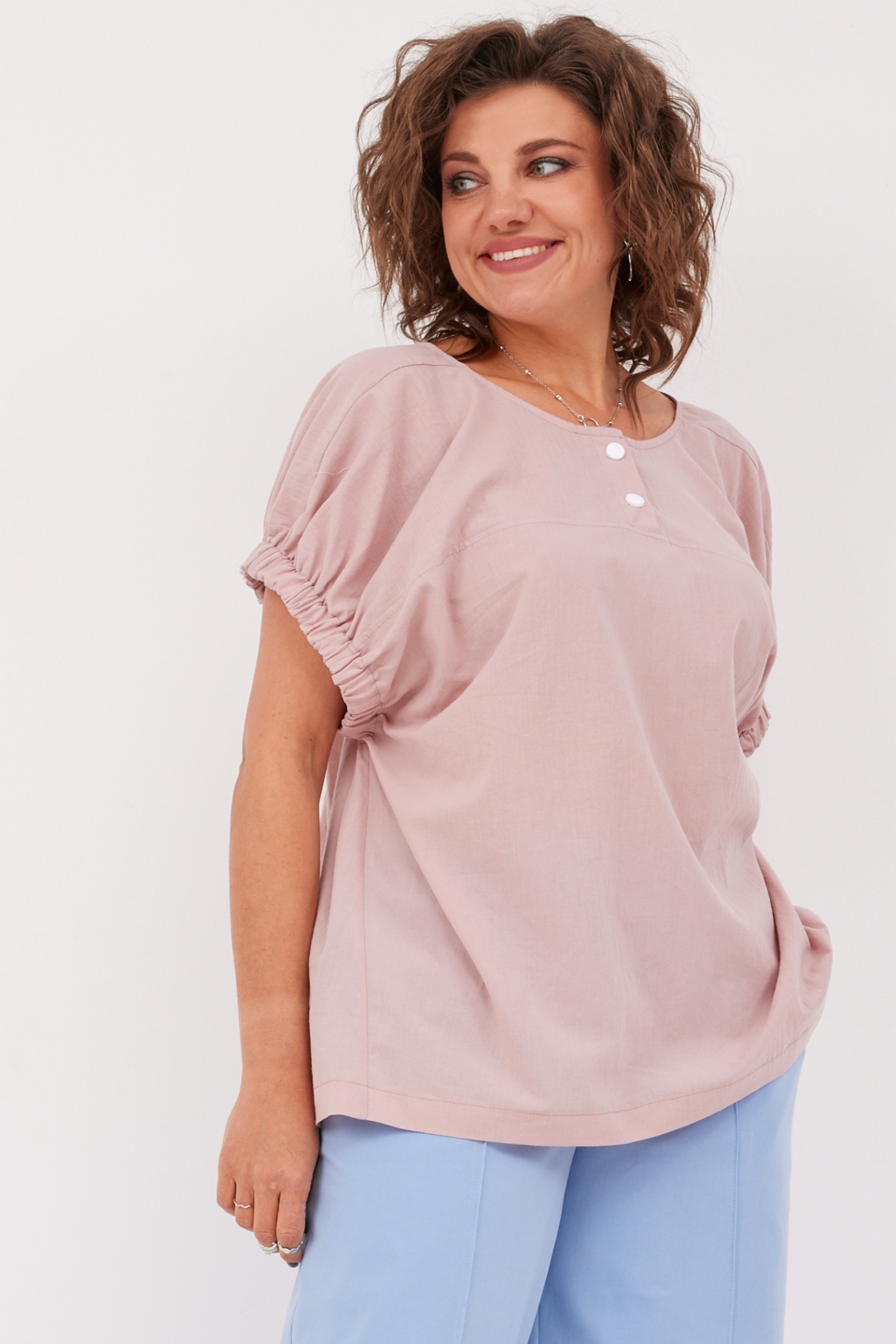 который подарит Вам невероятный комфорт в жаркие дни. Блуза с полукруглым вырезом на отрезной