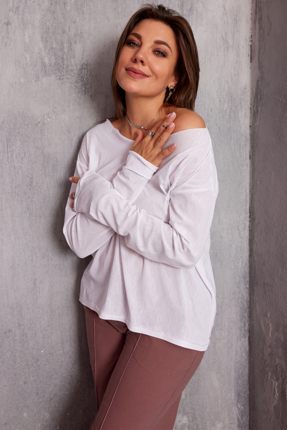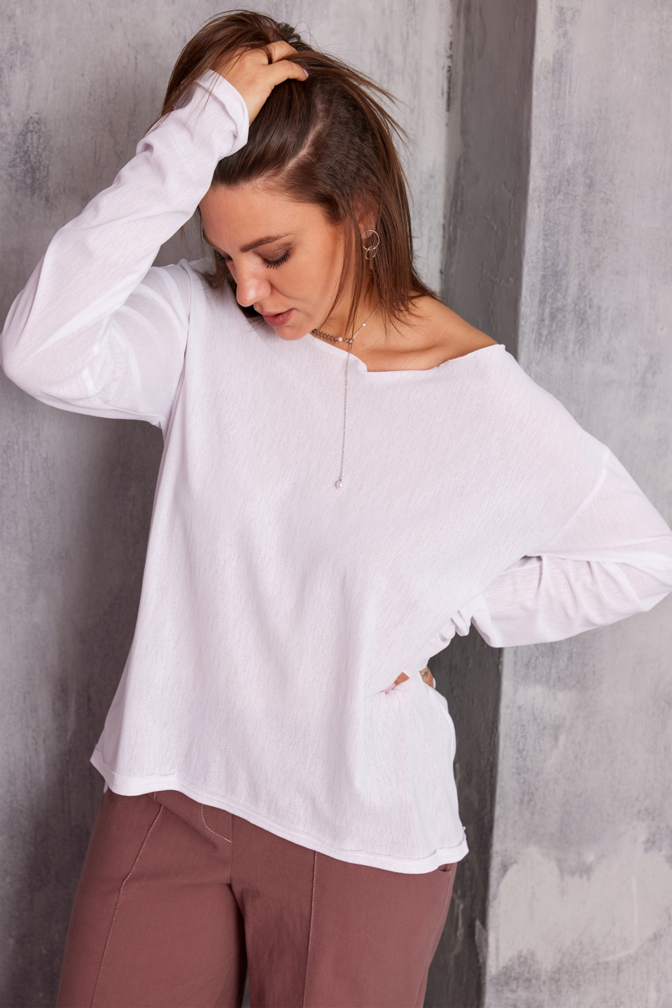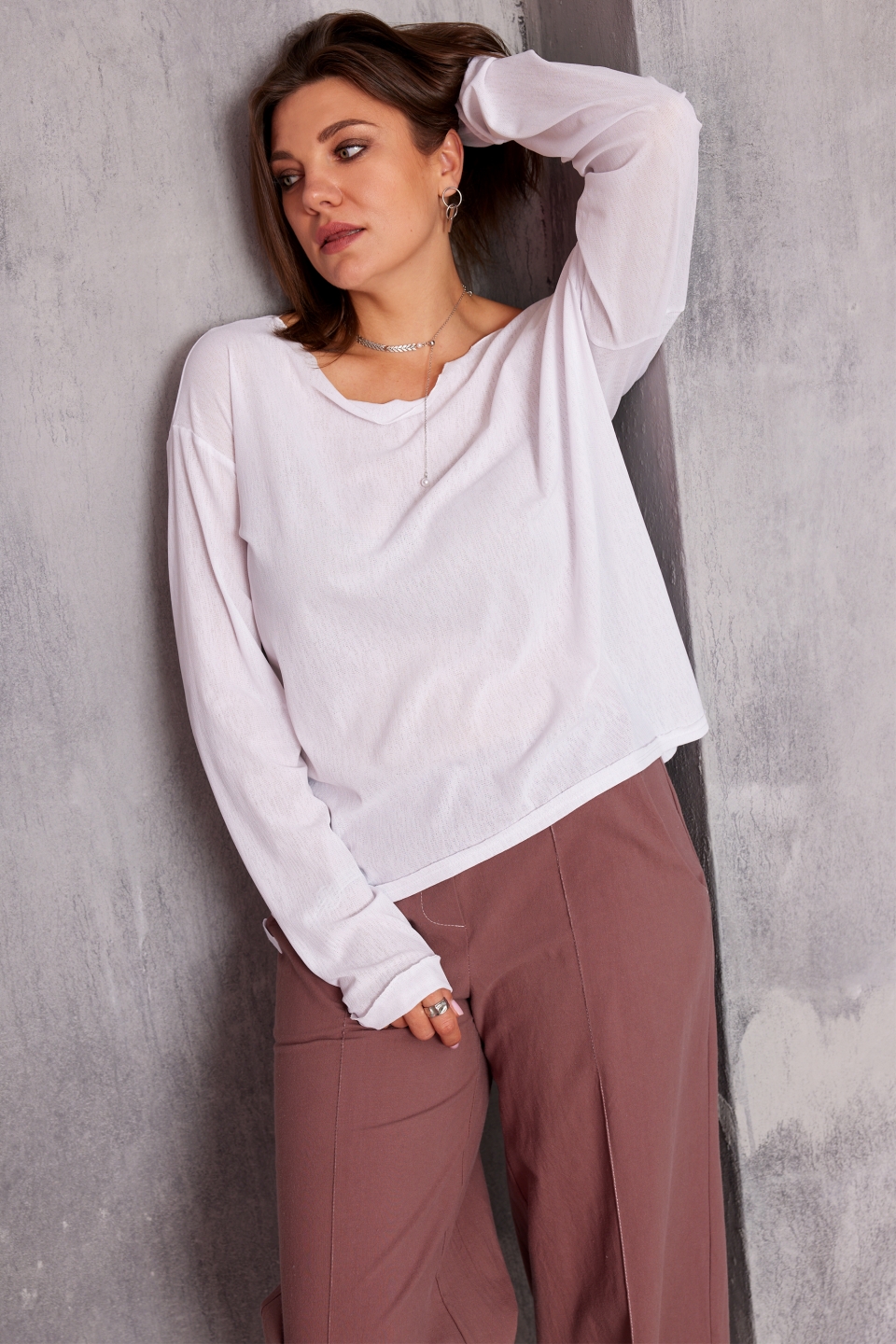 романтичный и уютный образ. Лонгслив выполнен из лёгкой, полупрозрачной,