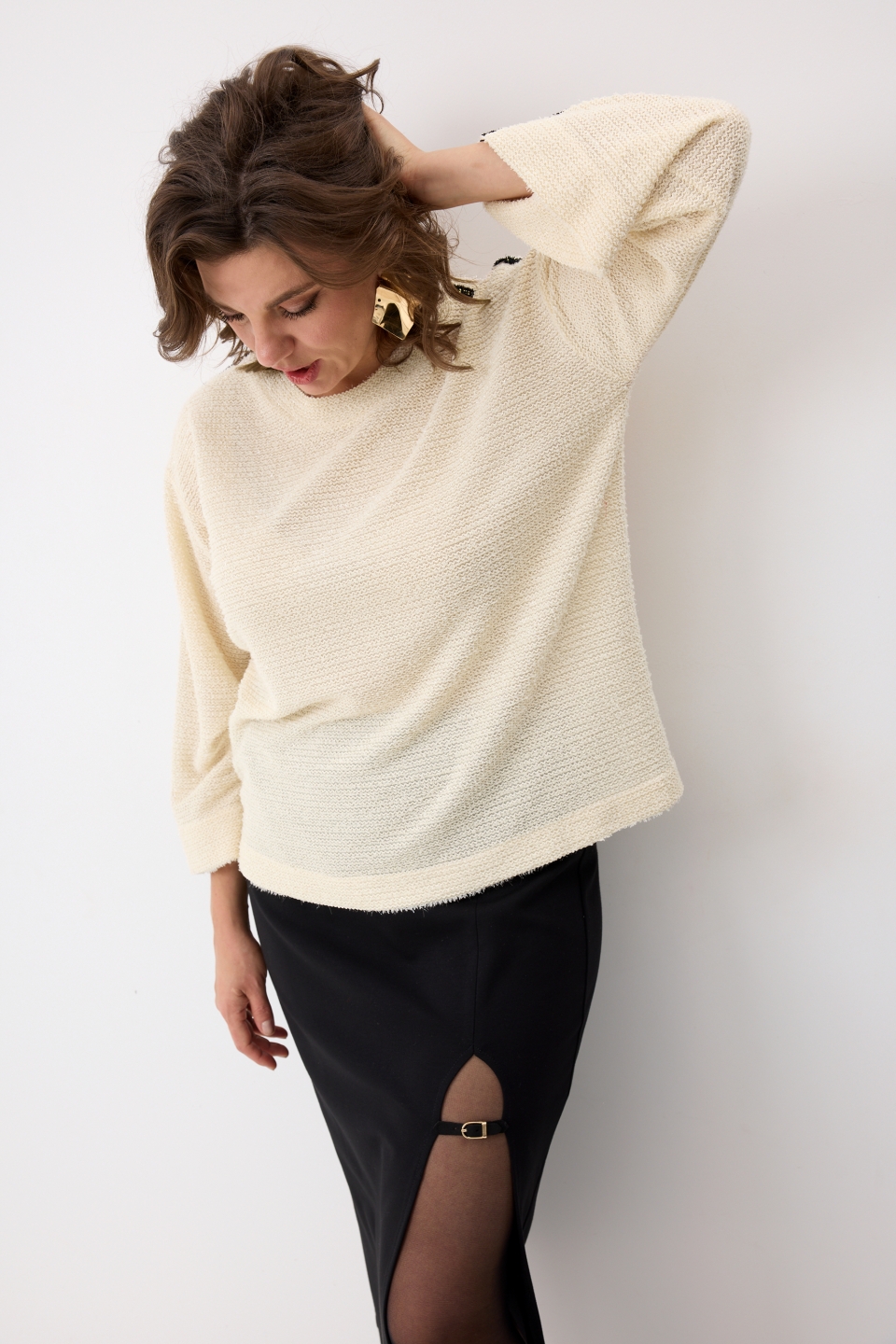 свободного кроя из фактурного трикотажа с вплетением мерцающих нитей в