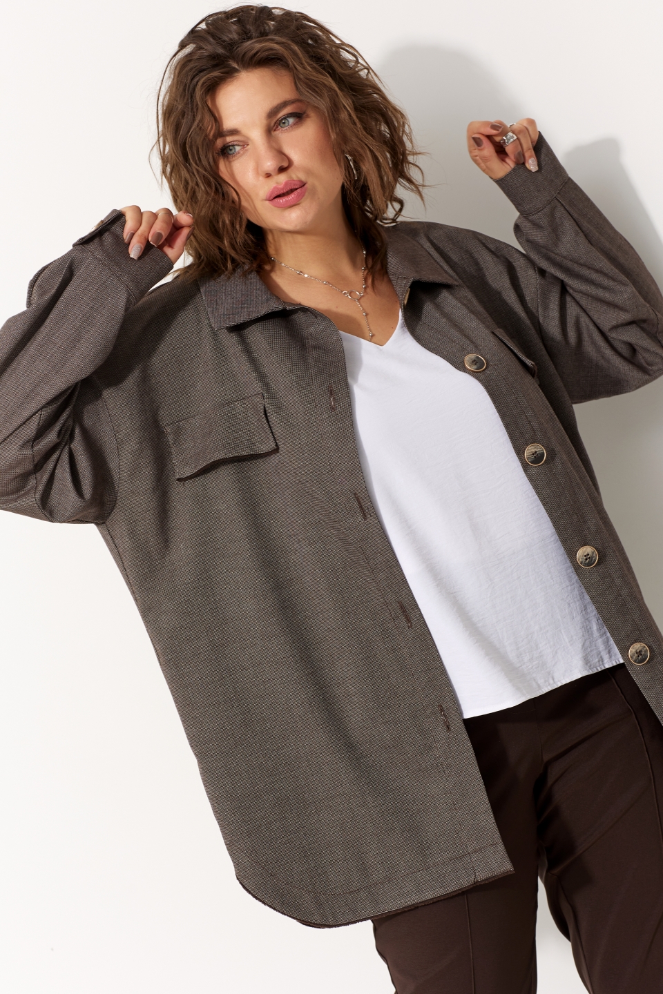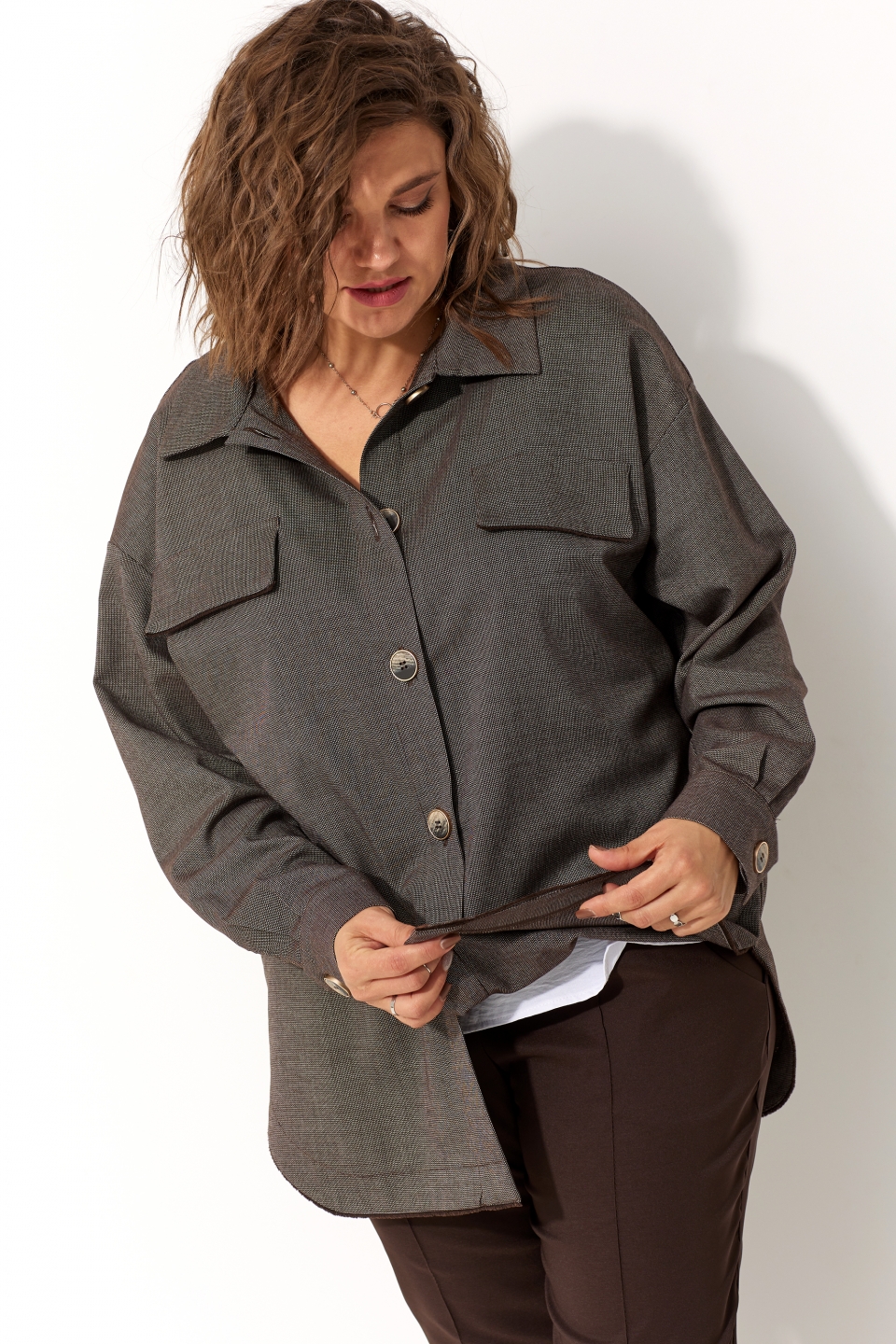 выполнена в стиле оверсайз. По линии груди декоративные клапаны, по низу