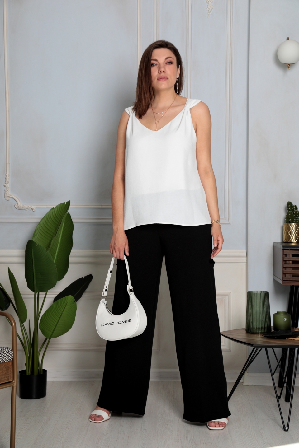 полуприлегающего силуэта, слегка расклешённая к низу. Выполнена из лёгкой, струящейся ткани.