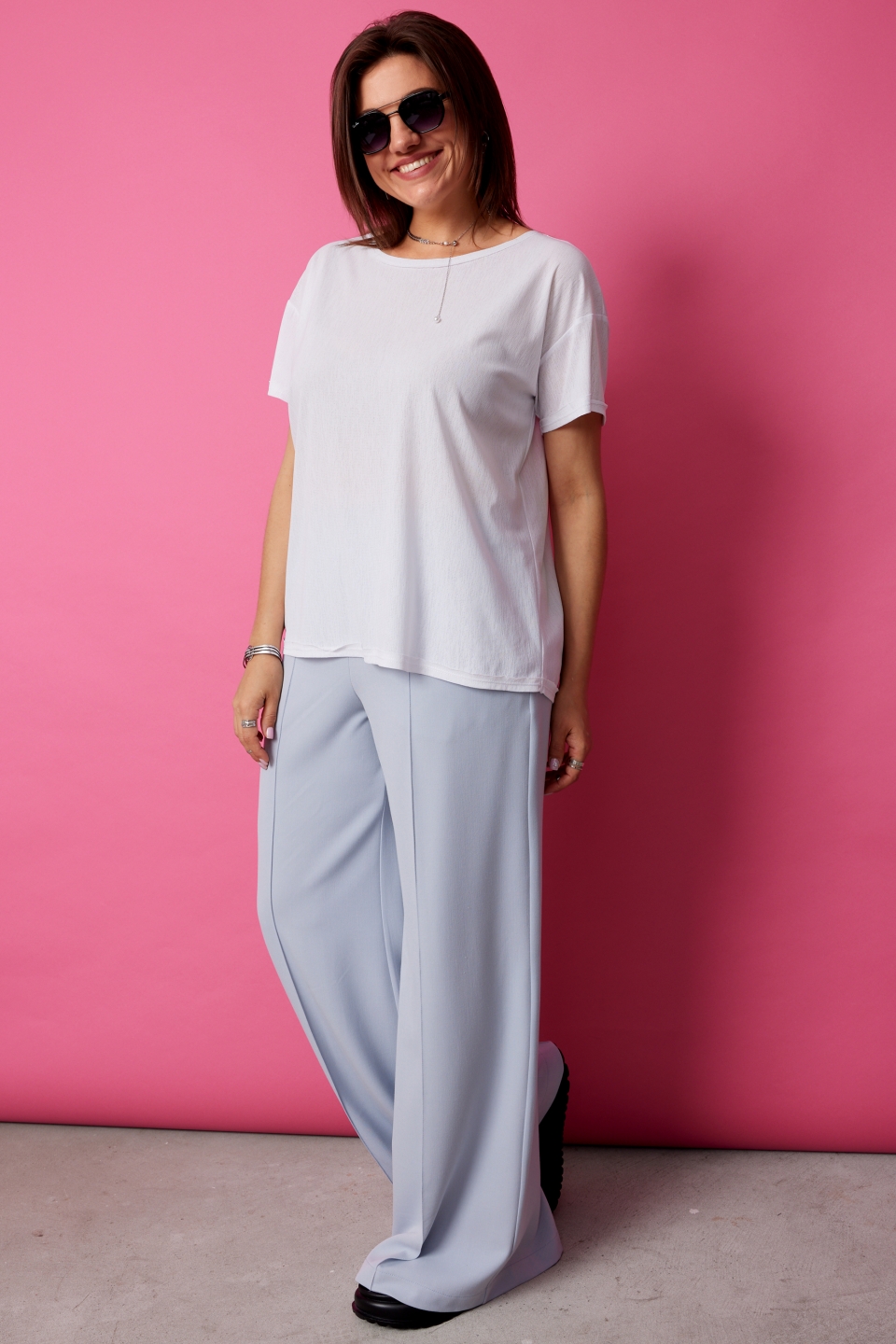 палаццо в нежном голубом оттенке, покорят Вас с первого взгляда. Струящийся