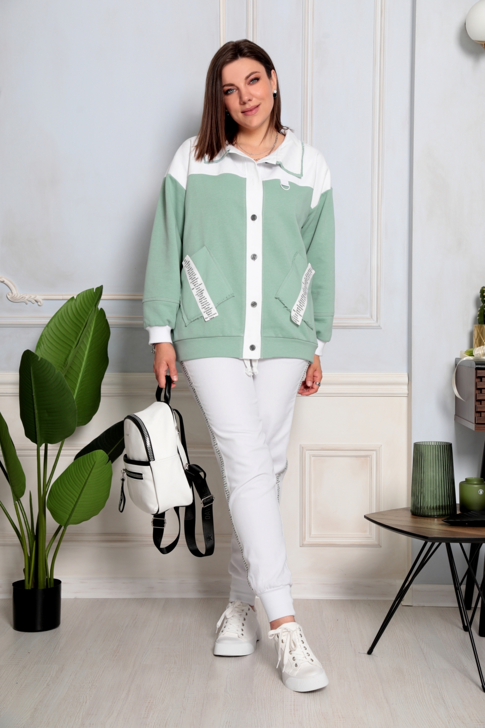 Отрезная кокетка на задней части брюк делает их посадку идеальной. Все манжеты обработаны хлопковым трикотажным полотном с фактурой в стиле «Английской резинки».