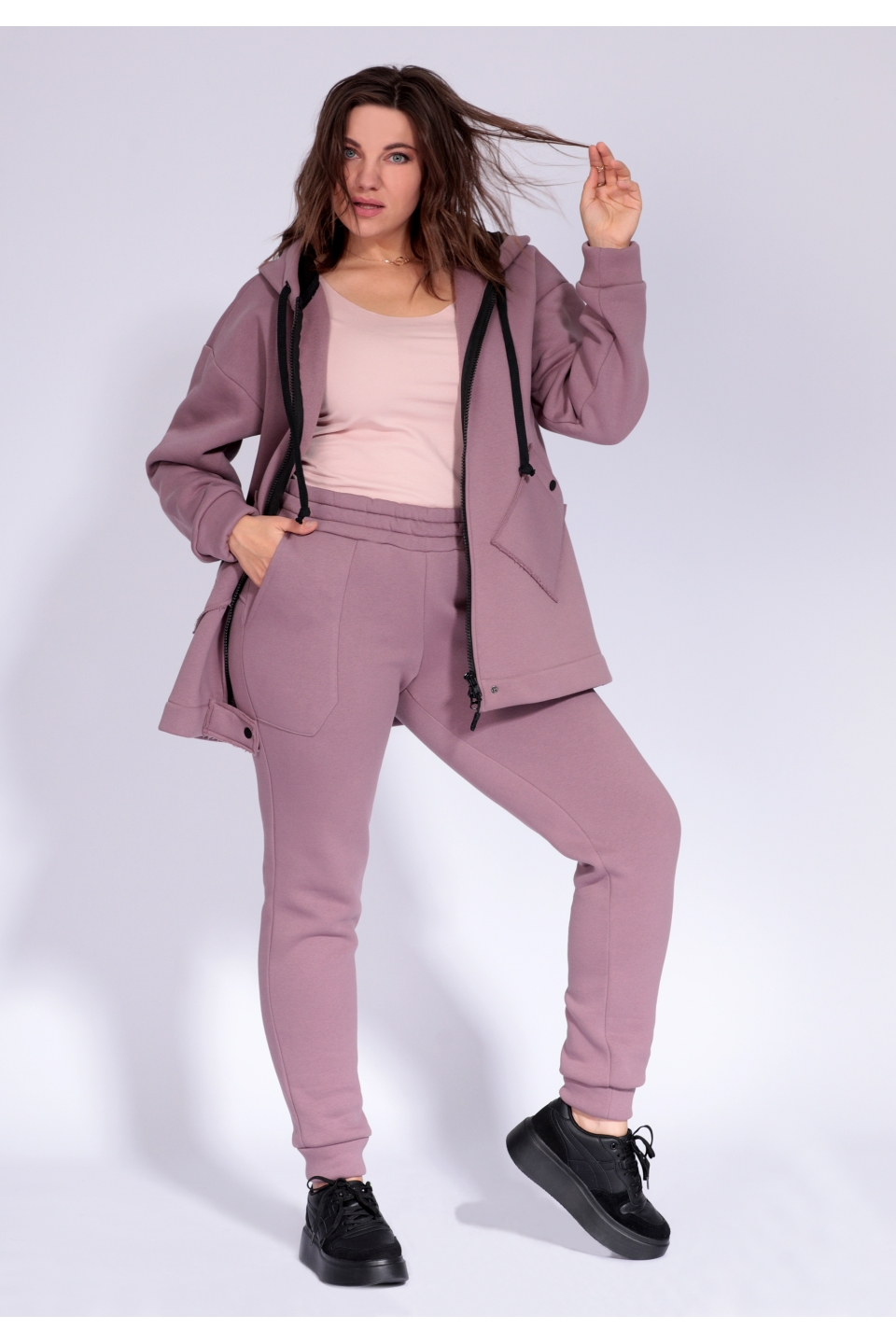 свободного кроя из невероятно комфортной трикотажной ткани с начесом. Брюки с