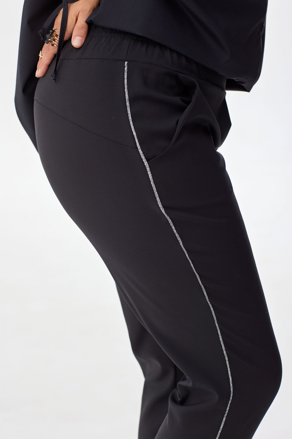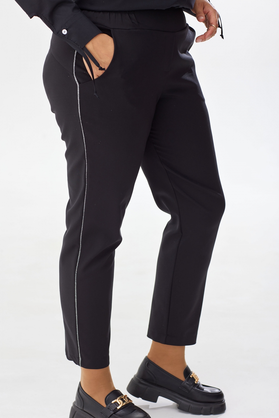 брючин застрочены декоративные люрексные канты, которые придают брючкам