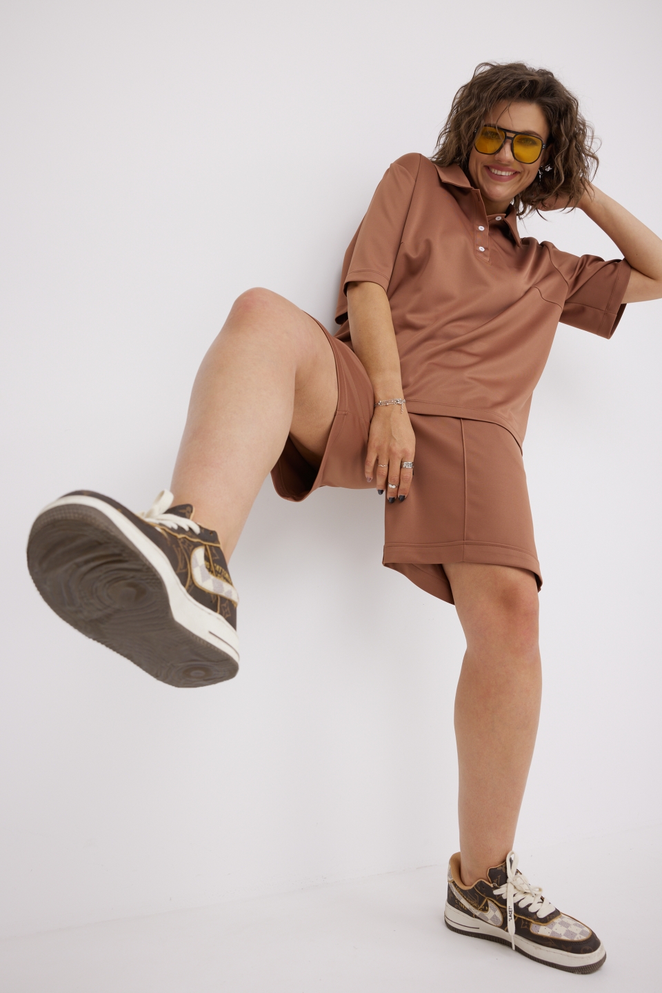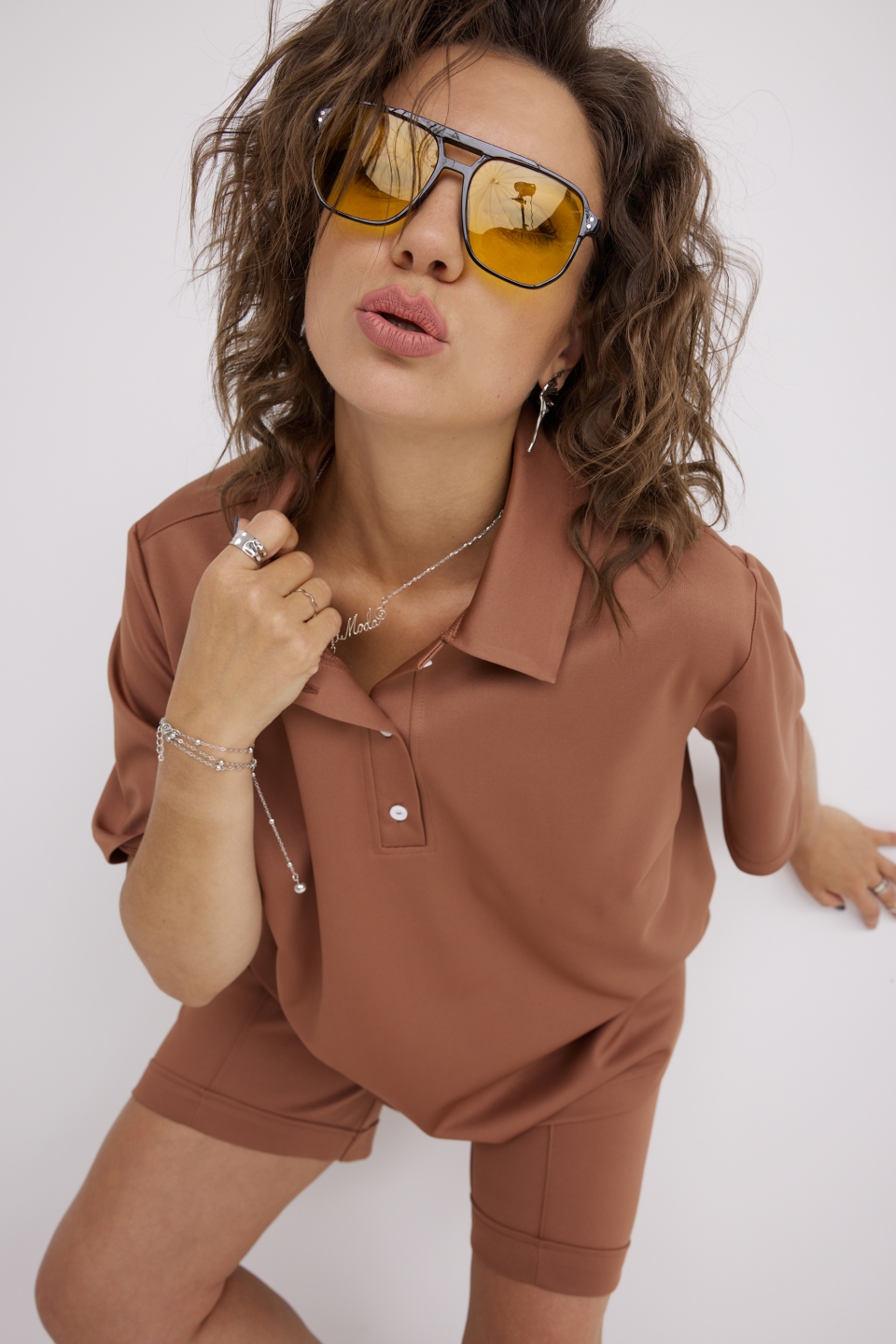 Яркий стильный женский комплект свободного кроя, состоящий из блузы - поло и шорт, выполнен из трикотажной, мягкой, растяжимой ткани с эффектом перелива. Отличный вариант для насыщенного впечатлениями лета. Потрясающе удобный и трендовый костюмчик с укороченными шортами, который должен быть в гардеробе любой модницы!