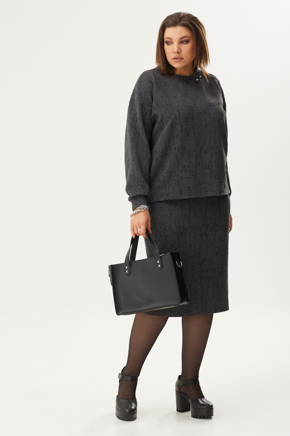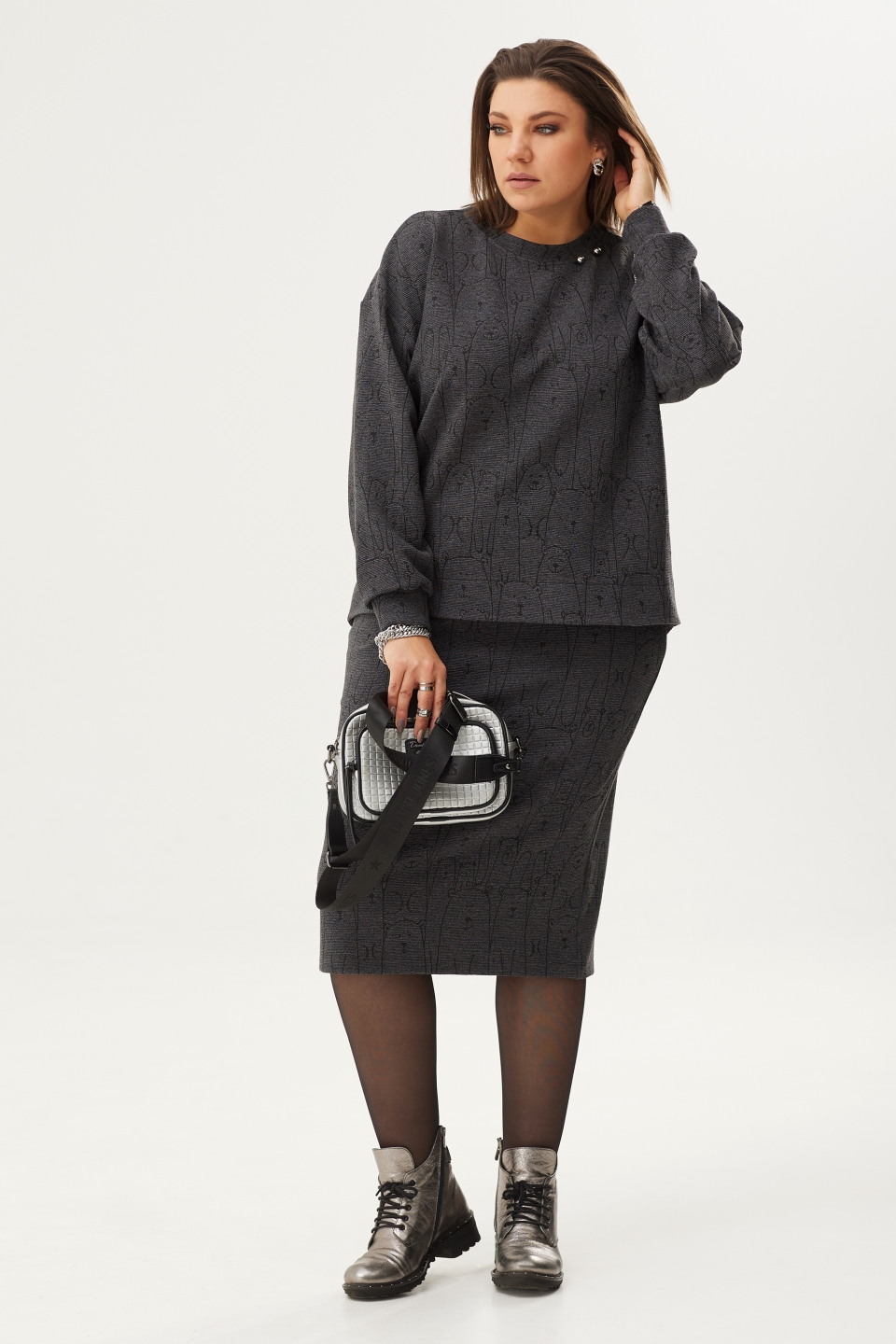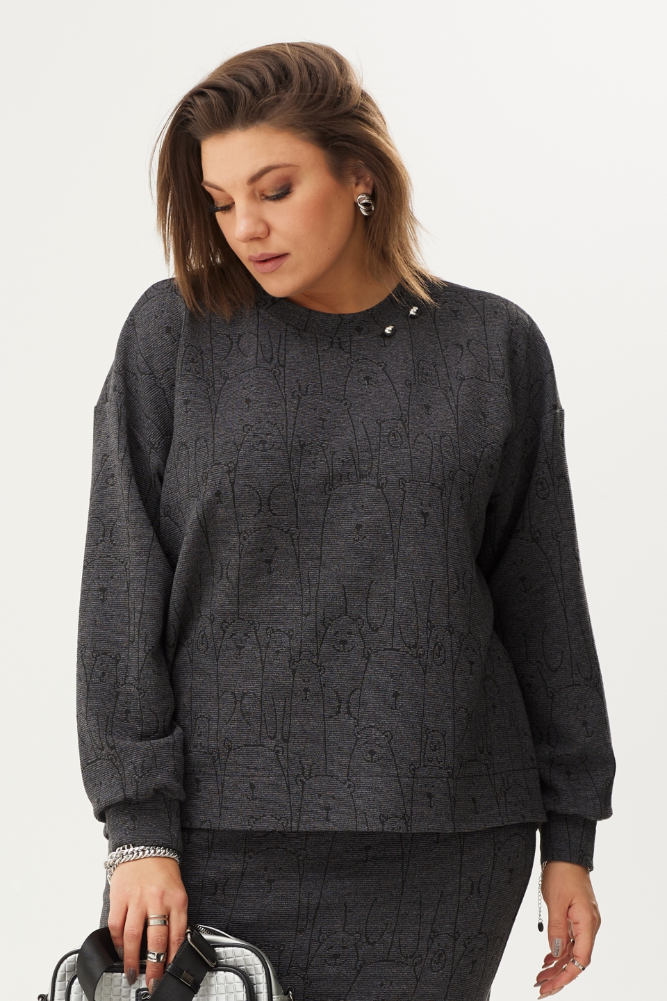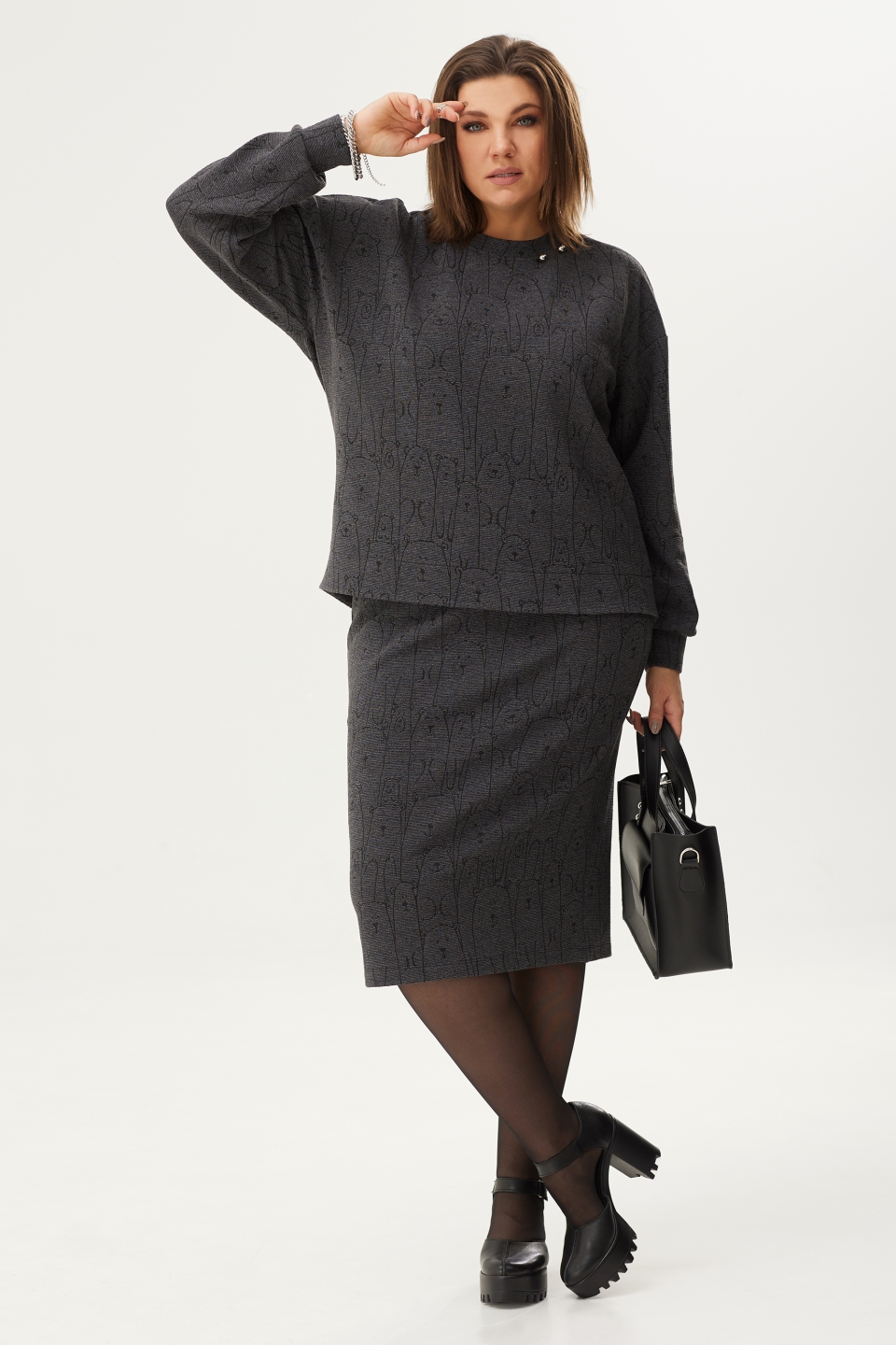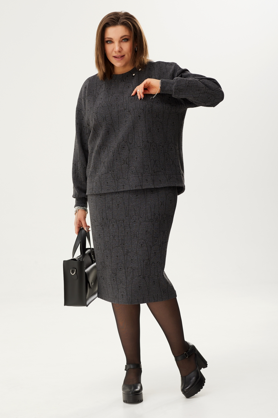 Комплект женский, полуприлегающего силуэта, состоящий из свитшота и юбки. Если вы хотите выглядеть нарядно и в то же время чувствовать комфорт, эта модель идеально Вам подойдёт! Комплект выполнен из эластичной приятной к телу ткани, имеющей рельефный рисунок забавных медведей. Это его главная изюминка!