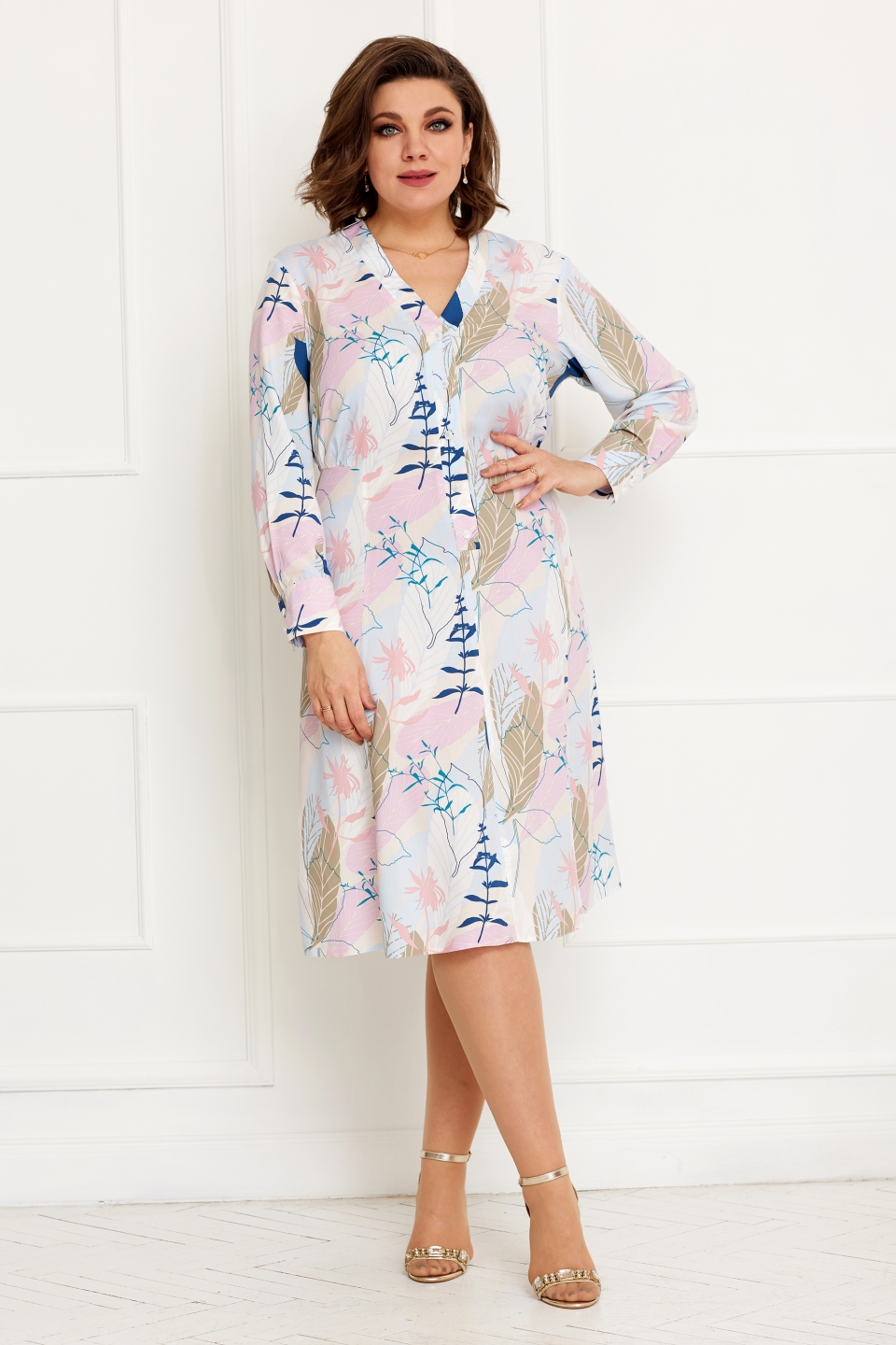 Шикарное женственное платье полуприлегающего силуэта, без подкладки. Выполнено из лёгкой, струящейся ткани, подчеркнёт женственность и добавит нотку романтики в Ваш образ. Оно прекрасно сочетается как с изящной, так и спортивной обувью. V-образный вырез удлиняет линию шеи и формирует красивое декольте. Передняя часть платья на притачной планке, имеющей застёжку на петли-пуговицы. Передняя и задняя часть платья присборена, что визуально моделирует фигуру, делая акцент на талии и удлиняет линию ноги. Рукав втачной, полной длины с манжетой и функциональными пуговицами.