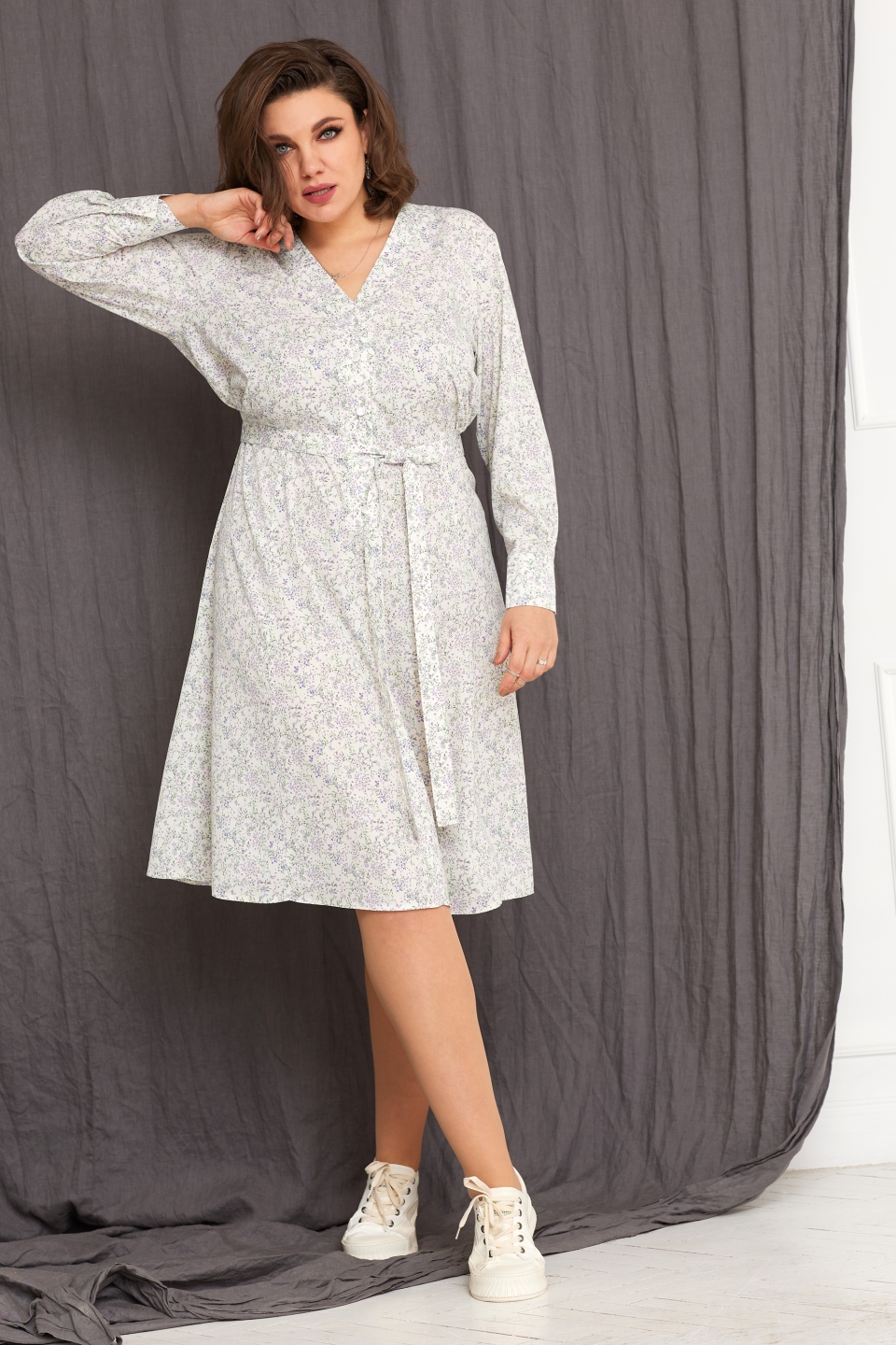 Передняя и задняя часть платья присборена, что визуально моделирует