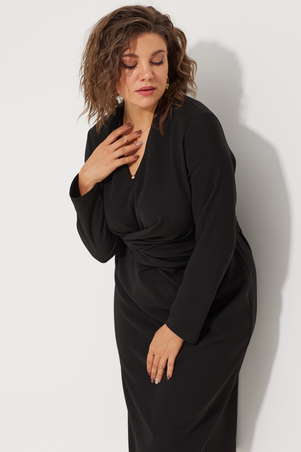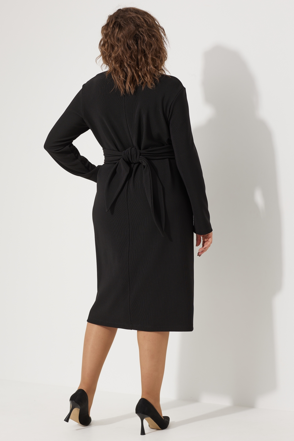 Ткань трикотажная средней плотности, фактурная «в рубчик» позволяет платью красиво подчеркнуть фигуру, скрывая недостатки.