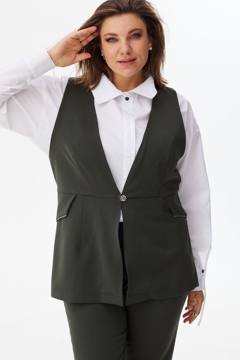 фото (под жилетом) представлена хлопковая блуза BegiModa,